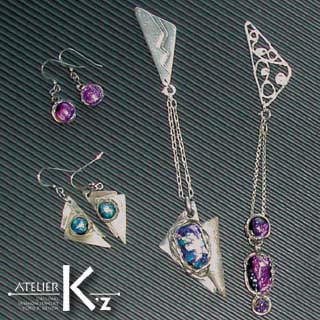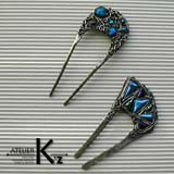 ダイクロガラスといぶし銀のコントラストが美しいモダンな かんざし。<和>に限らず、パーティ等のアップヘアにもお使いいただけます。